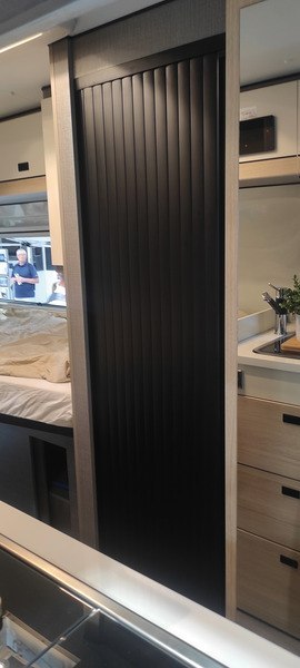 Maksymalna wysokość 198 cm, maksymalna szerokość 100 cm, obie z możliwością skrócenia. Szerokość listwy ok. 32 mm. Zakres dostawy: drzwi żaluzjowe, ślizgi podłogowe, 2 szyny prowadzące 90° (100/20 cm) na górę i dół, pasek magnetyczny 2 m.