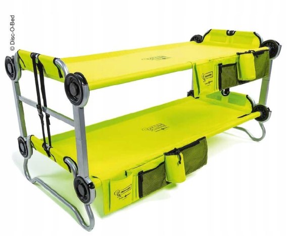 Zajmujące niewiele miejsca łóżko piętrowe lub 2 praktyczne łóżka pojedyncze z praktyczną kieszenią boczną i solidną stalową ramą. Idealne na kemping, w plenerze i w domu.