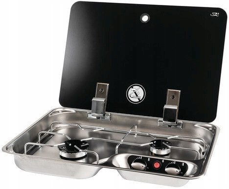 Dwupalnikowa kuchenka gazowa firmy Can do zabudowy w kamperach i przyczepach kempingowych wykonana jest z wysokiej jakości materiałów oraz charakteryzuje się eleganckim designem i perfekcyjnym wykonaniem. Czarna pokrywa ze szkła hartowanego po zamknięciu pozwala na stworzenie dodatkowej, użytecznej przestrzeni w naszej kuchni. Pokrywa jest odporna na uszkodzenia dzięki zawiasom umożliwiającym powolne i delikatne zamykanie.
