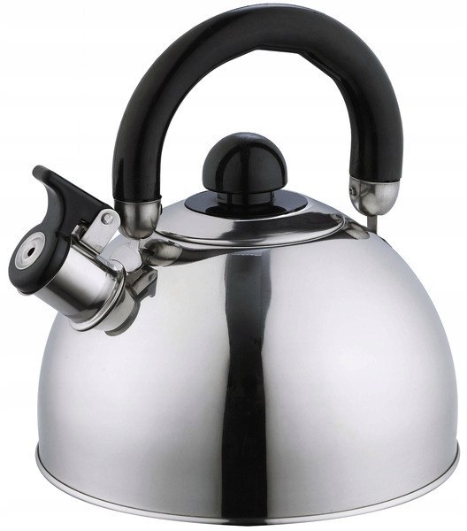 Czajnik spiralny ze stali nierdzewnej, pojemność 2,5 litra. Z rurą i dnem sandwiczowym. Obsługa jedną ręką, izolowany uchwyt, można złożyć, aby zaoszczędzić miejsce.