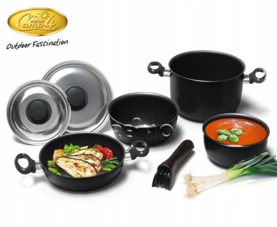 Zestaw garnków CAMP 4 do kampera 7 cz. BLACK