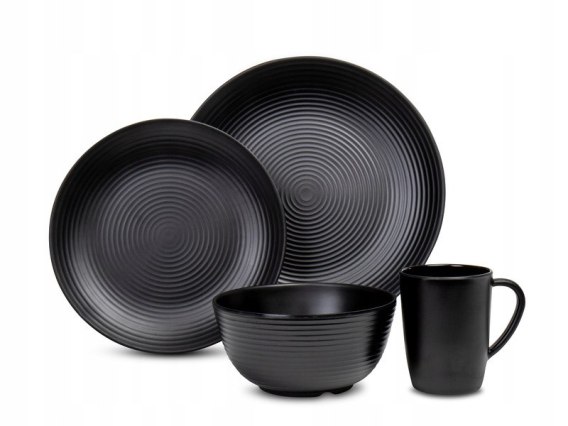 Zestaw obiadowy LUND z melaminy, 16 elementów, dla 4 osób, czarny