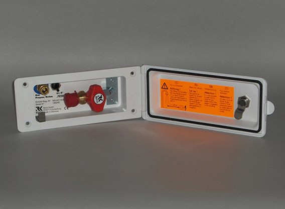 - Zewnętrzne gniazdo wody i gazu do kamperów i przyczep kempingowych